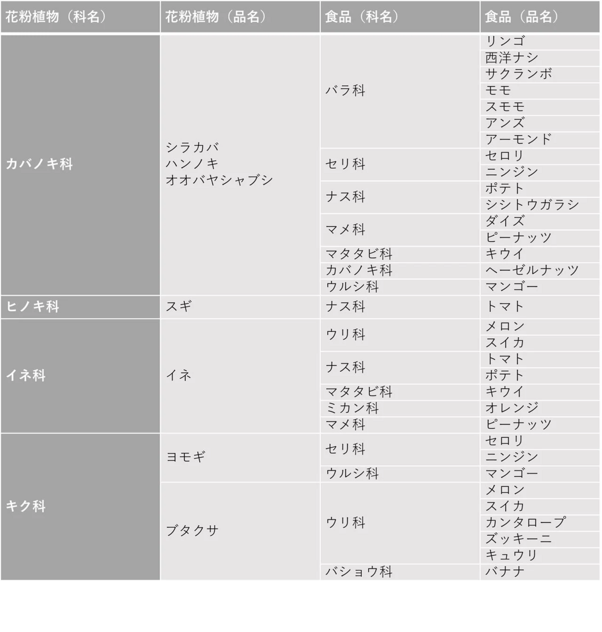 花粉のアレルゲンと似た構造を持つ食品一覧