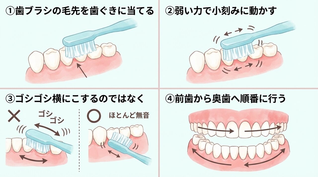 歯ブラシでのマッサージ手順