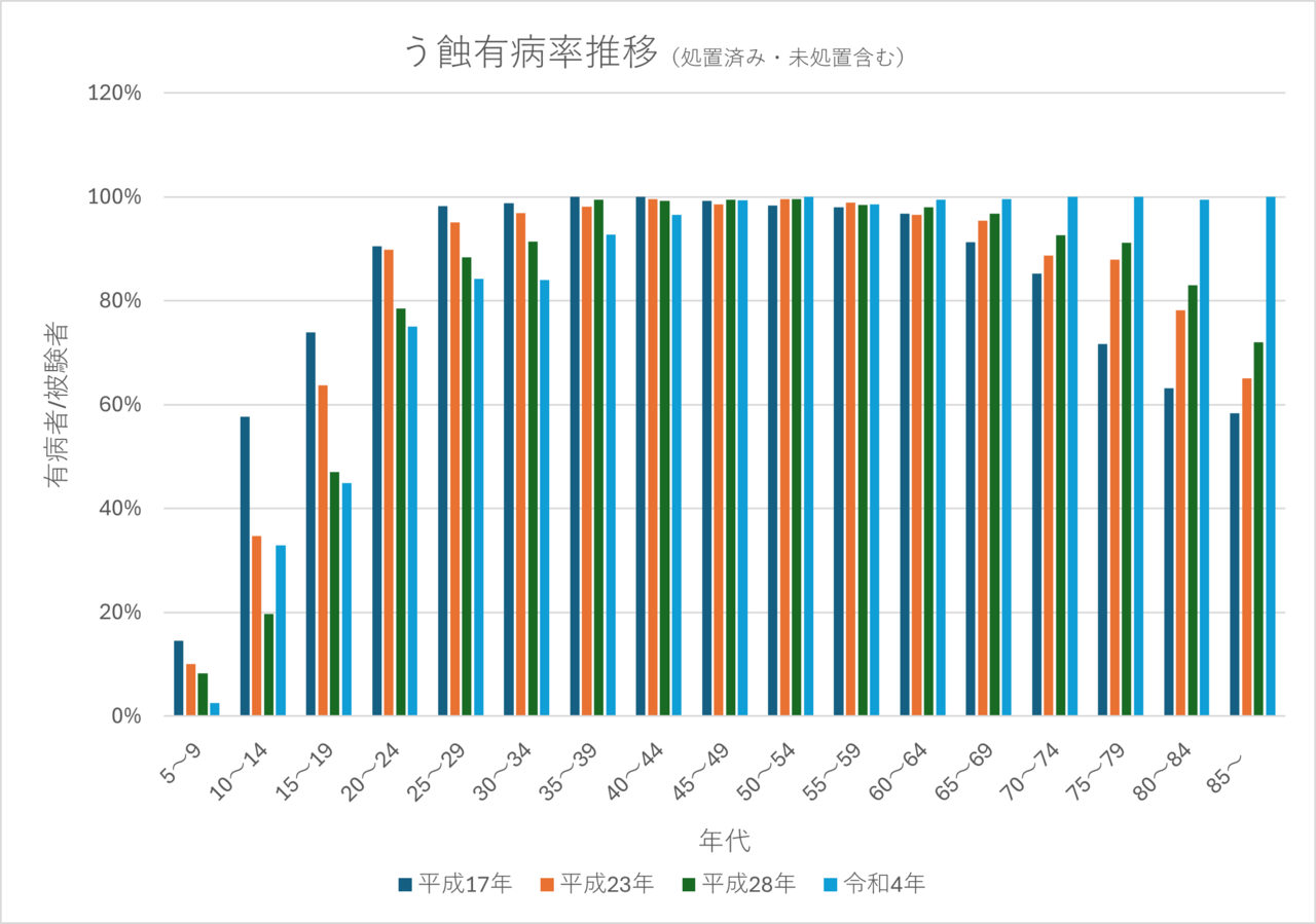統計で見るむし歯の有病率の推移
